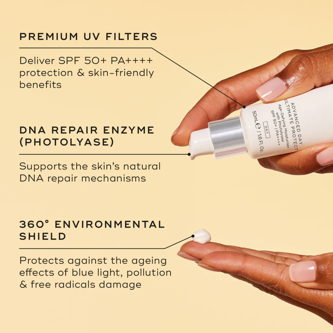 Advanced daily moisturiser with SPF protection, DNA repair technology, and complete environmental defence